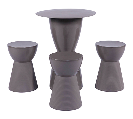 Mesa 0,77 H x 0,60 D / Tamborete 0,30 D x 0,44 H